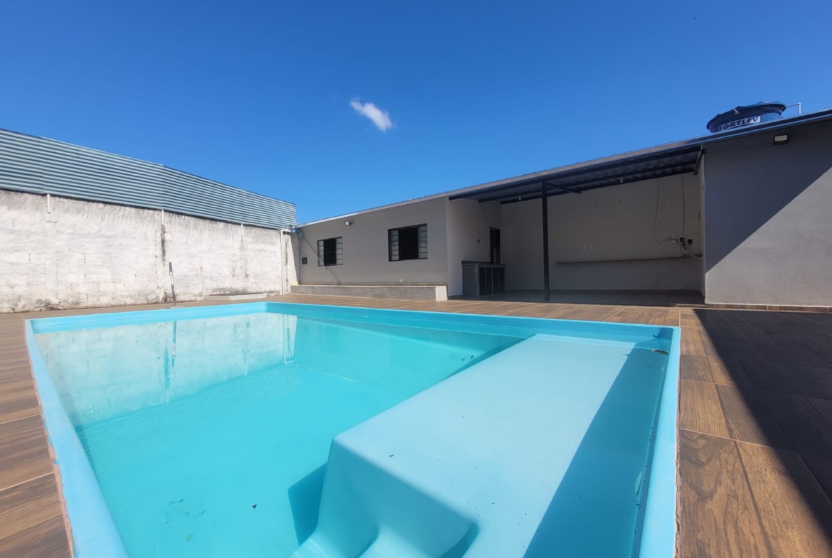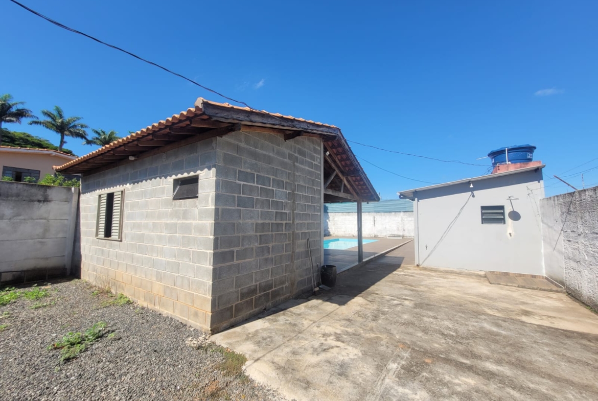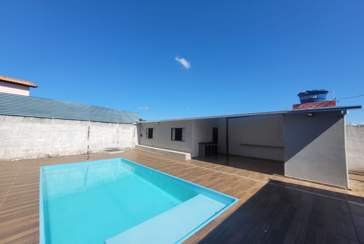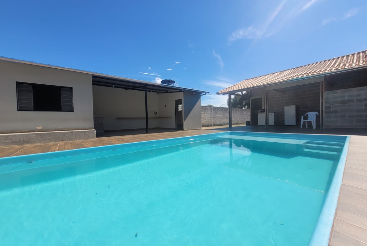 Imóvel constituído por 2 unidades sendo 1) Área de churrasqueira com banheiro e 1 quarto; 2) Edícula com 1 banheiro, varanda, sala e 1 quarto; 3) Piscina com 20m² (25.000 litros) em área de 90m² com revestimento em piso cerâmico antiderrapante.