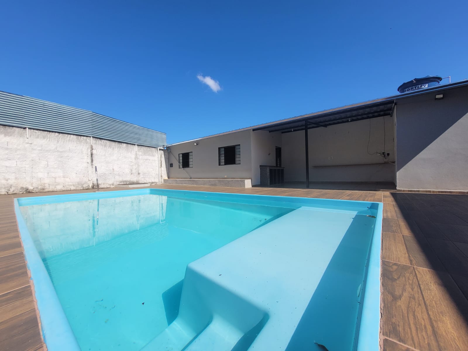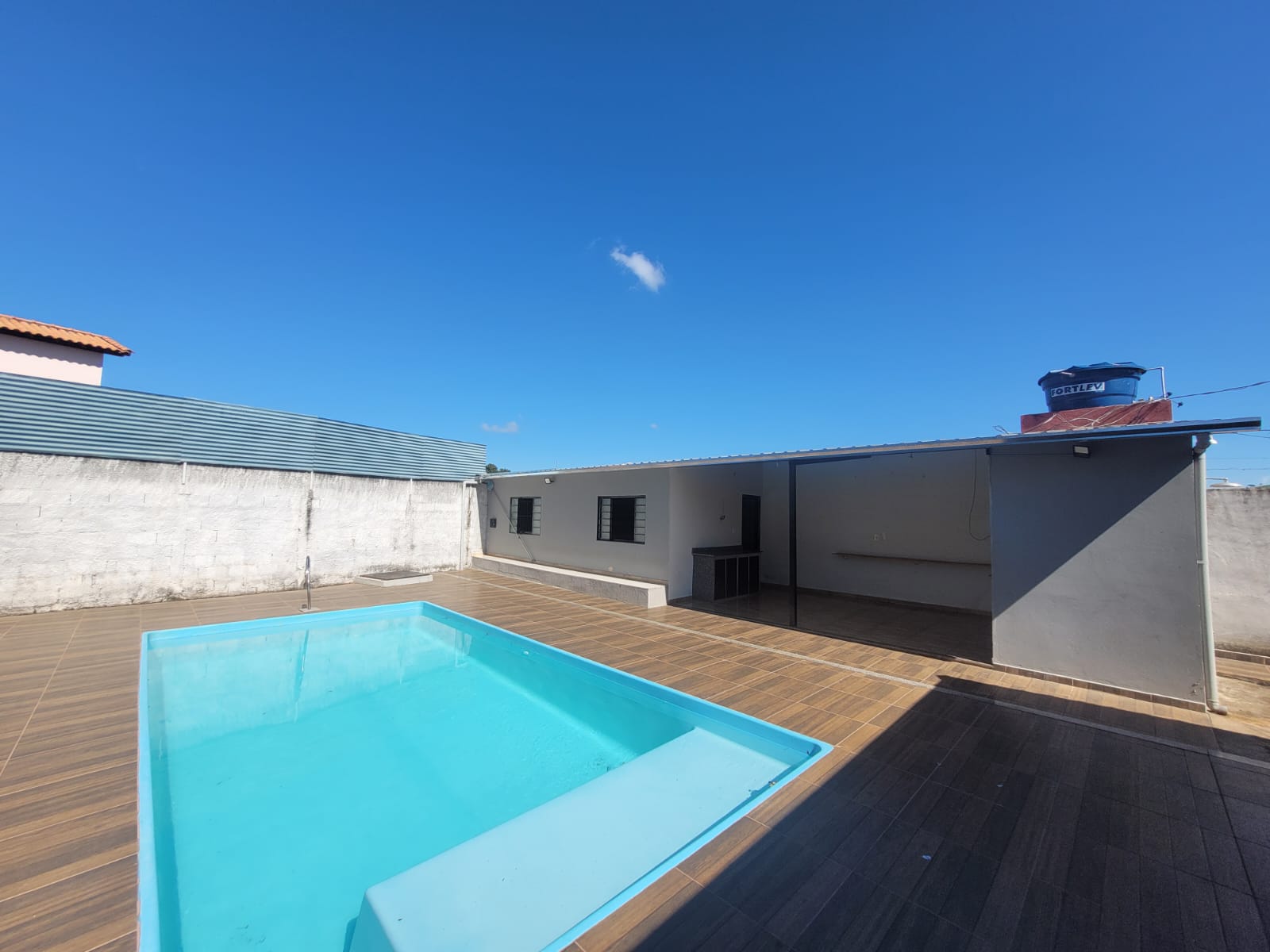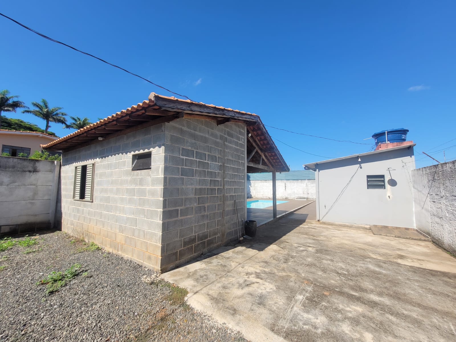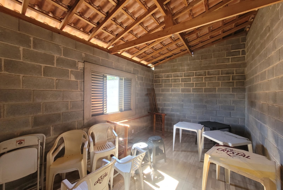 Imóvel constituído por 2 unidades sendo 1) Área de churrasqueira com banheiro e 1 quarto; 2) Edícula com 1 banheiro, varanda, sala e 1 quarto; 3) Piscina com 20m² (25.000 litros) em área de 90m² com revestimento em piso cerâmico antiderrapante.